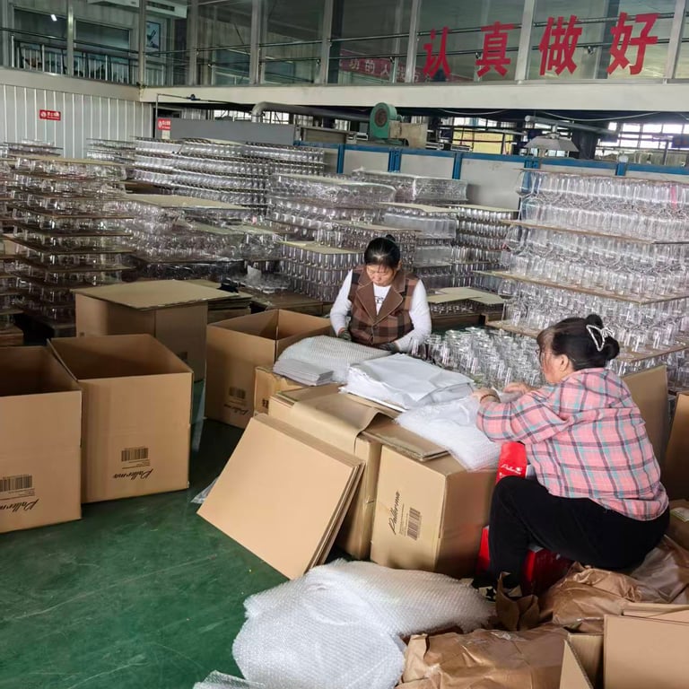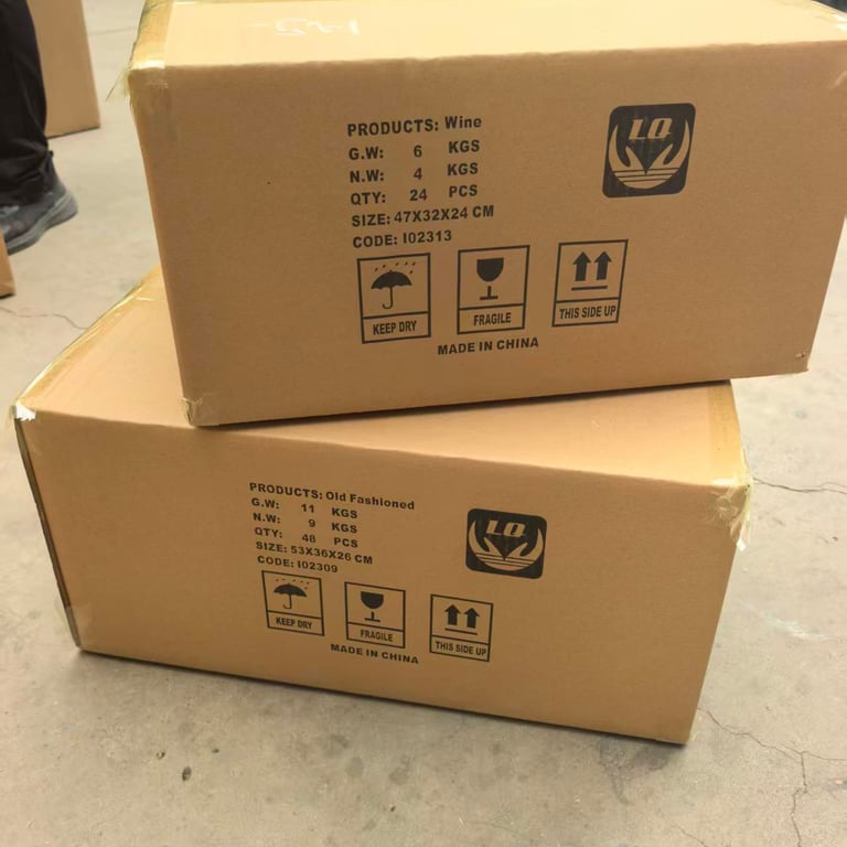 Each glass is packed in safe, export-grade cartons or gift boxes, with optional inner dividers or customized retail packaging.