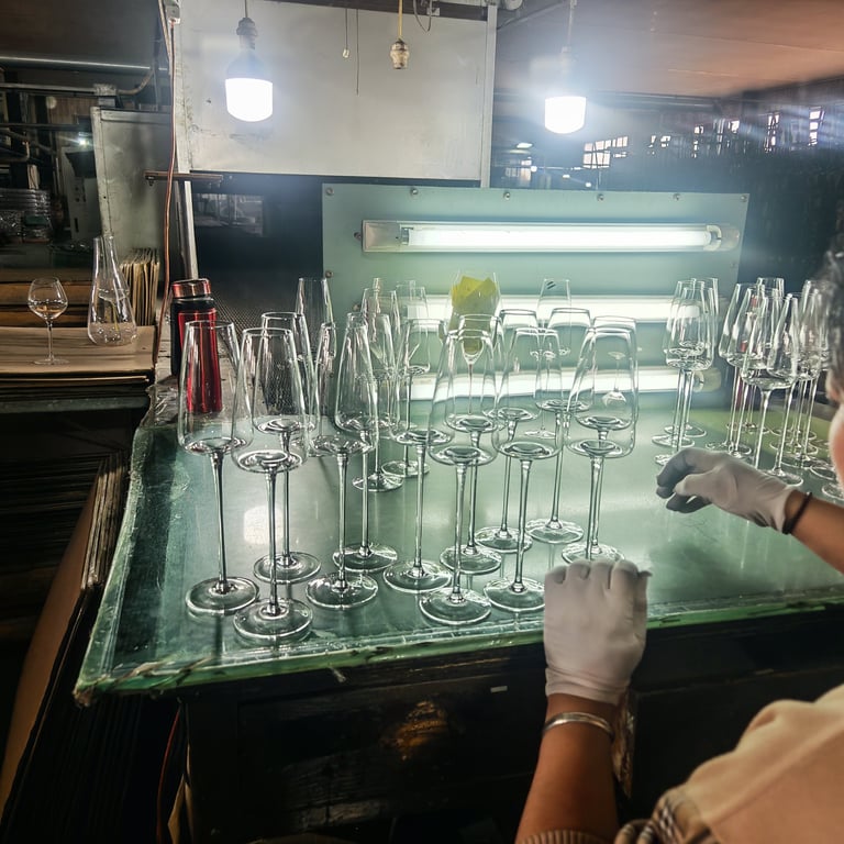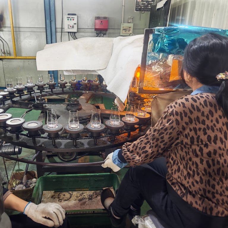 Explore the craftsmanship behind every piece of glassware — from material melting to hand-finishing, we ensure precision, quality, and consistency in every step.