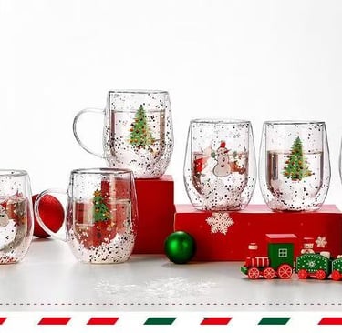 Our dedicated Christmas glassware collection covers every category buyers need for the holiday season: classic Bordeaux and Burgundy wine glasses adorned with snowflake etchings and holly motifs, tall champagne flutes with gold or silver rim detailing, hand-painted cocktail coupes, whiskey old-fashioned glasses featuring reindeer and Christmas tree designs, and elegant crystal decanters presented in premium gift packaging.